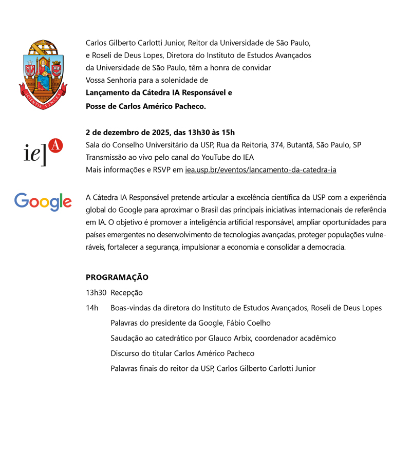 Convite lançamento Cátedra IA Responsável