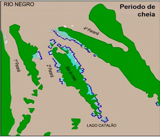 Figura 4 – Localização da comunidade durante a cheia. (Fonte: Ferreira de Souza, 2020: 47)
